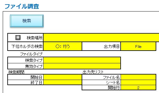 ファイルタイプ : 検索対象となるファイルタイプを指定します。空白の時は全てのタイプが対象となります。 複数の場合は、[;]で区切ります。(例) .xls; .txt
