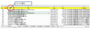 File欄の「□」釦を押下すると、選択しているセルのファイルが開きます。ファイルがEXCELの場合は、読取専用で開きます。EXCEL以外の時は、選択ファイルのファイルタイプに応じて、登録されているアプリケーションでファイルを開きます。